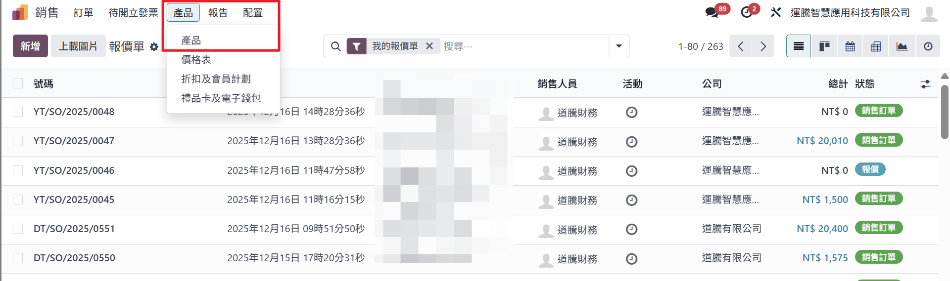 產品只要曾經被用在報價單、銷售訂單、發票或會計分錄中,就無法刪除。