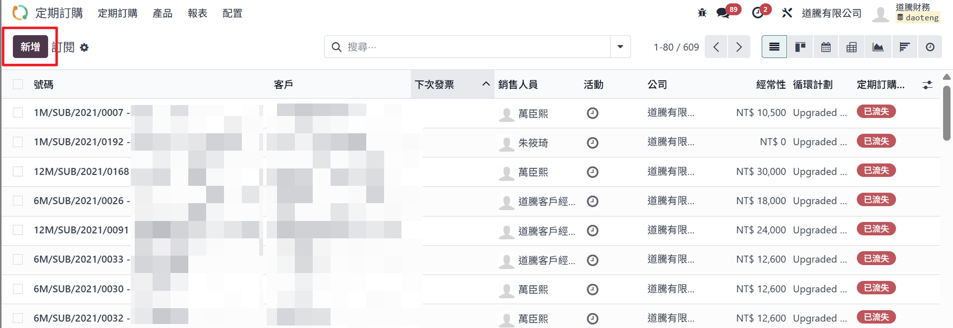 - 循環週期:用來決定「這筆訂購多久會自動開一次發票」。