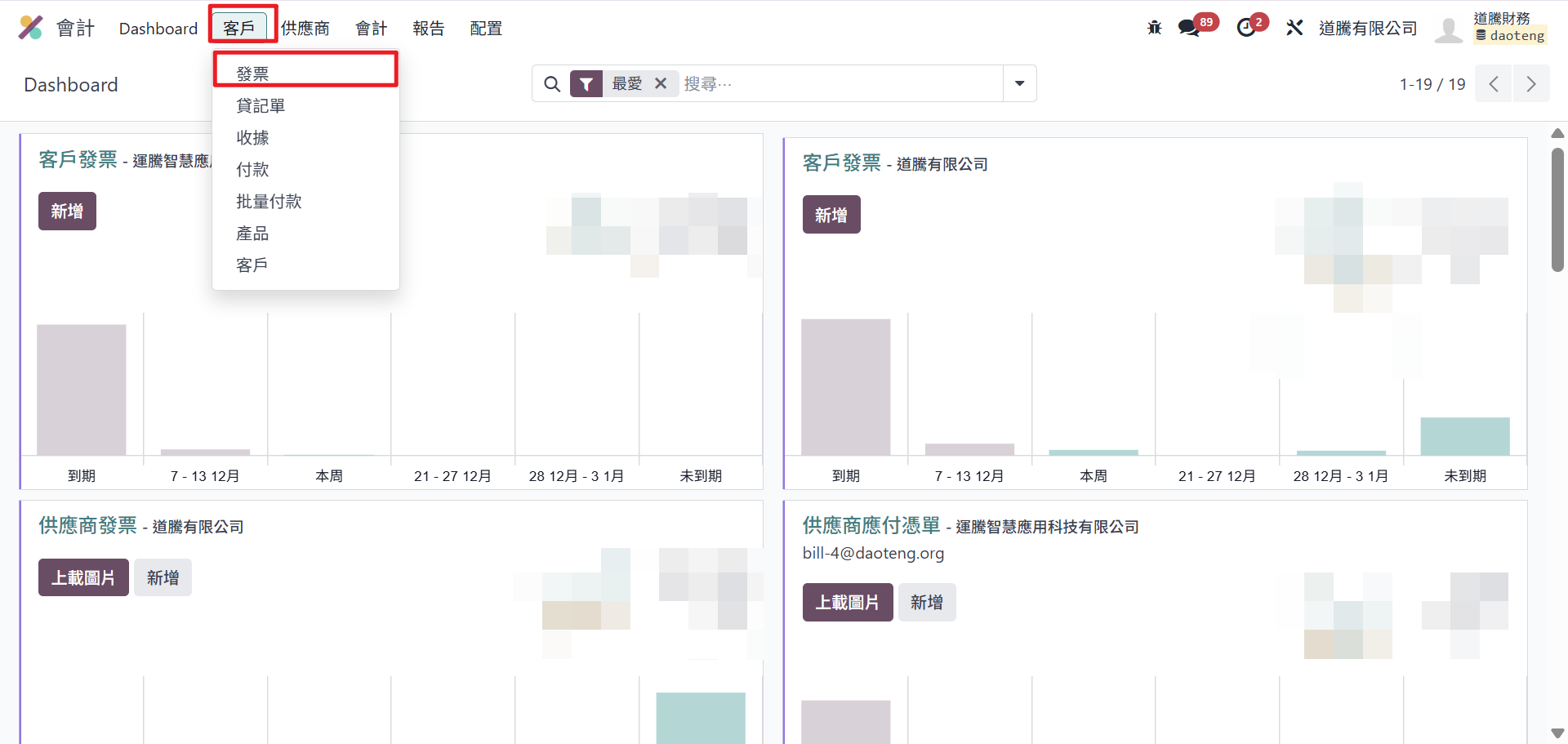 Step2 :點選【客戶】→【發票】。