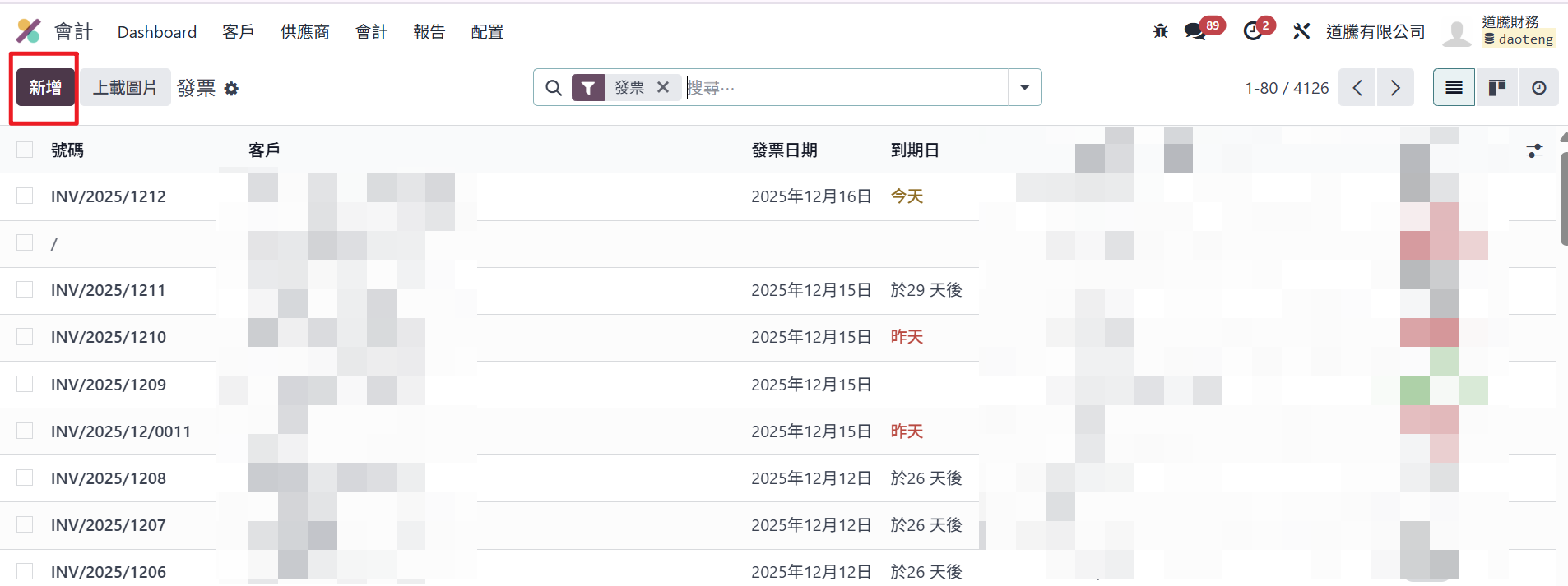 Step4:選擇客戶、選擇發票日期、到期日、日記帳、客戶參照。